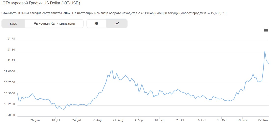 С момента появления IOTA на рынке, стоимость валюты переменчива, но в графиках не наблюдается резких скачков, а прибыльность на текущий момент составляет порядка 30%. Стоит отметить, что проект заинтересовал не только пользователей и майнеров, а и производителей различных гаджетов по всему миру. Именно поэтому она считается одной из самых перспективных криптовалют не только в плане заработка, но и в более глобальных рамках.
