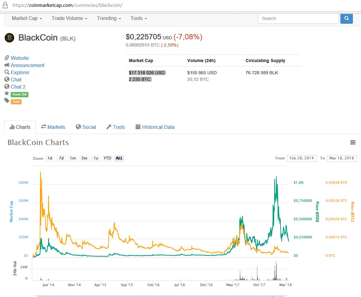 Текущие котировки - $0,225705 USD (0,00002913 BTC) при рыночной капитализации в $17 318 026 USD (2 235 BTC). Криптовалюта с повышенным уровнем конфиденциальности и защищенности появилась в 2014 году и была одним из первых проектов на Proof-of-Stake (PoS). BlackCoin используется примерно такие же «фишки», которые внедрены в Monero.