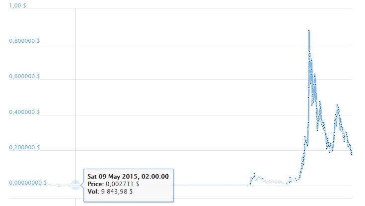 Сначала давайте выясним, какое положение Stellar занимает среди других криптовалют. Посмотрев график роста курса можно заметить типичную тенденцию для большинства криптовалют: низкий курс в первый период, резкий рост после «публичного обсуждения» и стабилизация с падением. На начальном этапе курс Стеллар составлял всего 0,002 доллара. В январе 2018 произошел рост до 0,9 доллара, но после он стабилизировался на уровне 0,17-0,2. Таким образом, произошел рост в 100 раз всего за 2 года. Это относительно неплохой показатель, если учитывать высокое давление со стороны гигантов криптовалютного мира (Bitcoin, Ethereum и других).