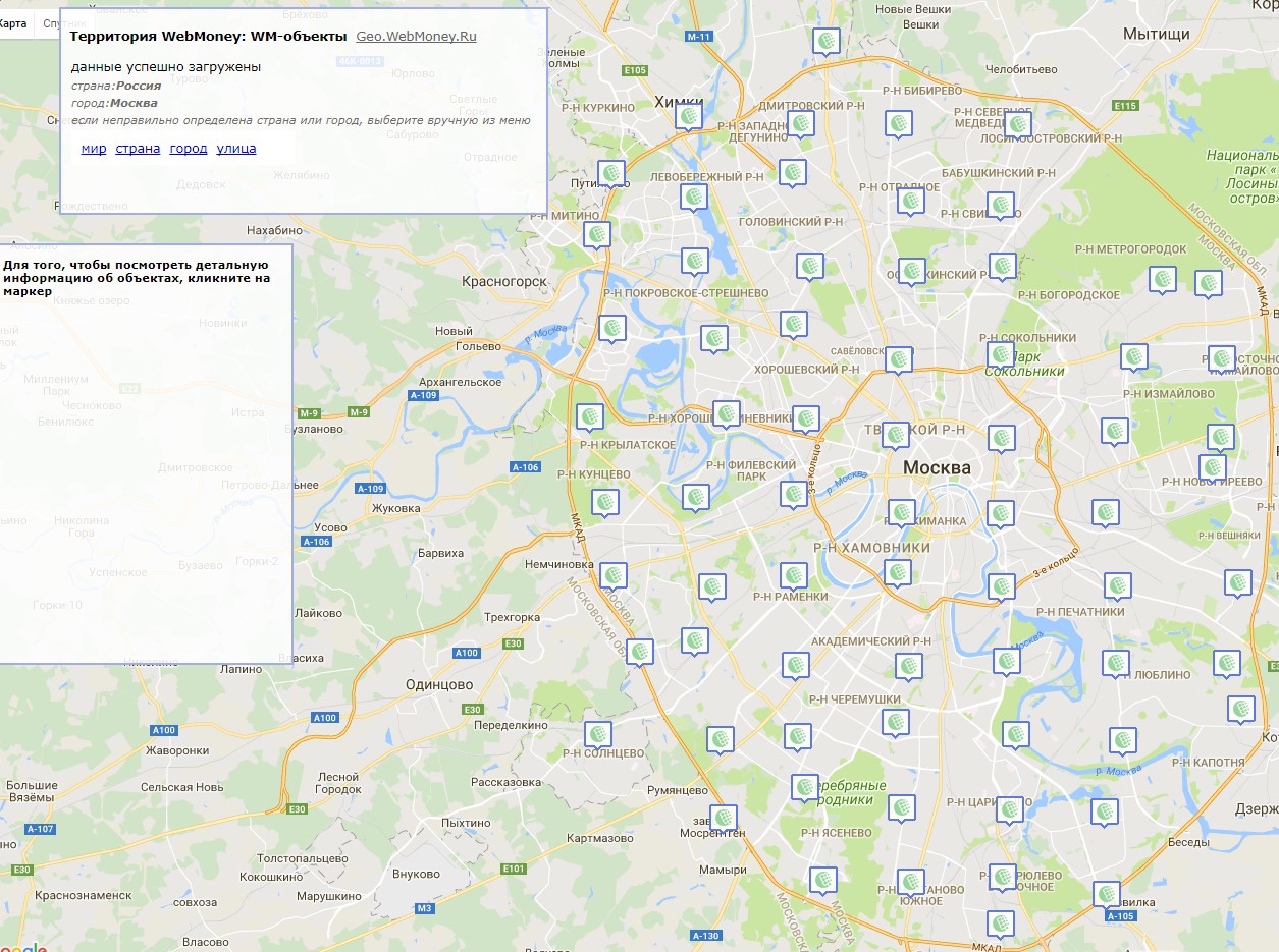 Главные его достоинства – самообслуживание и быстрота, с которыми работают автоматы. Найти терминал в своем городе можно тут - http://geo.webmoney.ru/wmobjects/map.aspx?lat=55.75&lon=37.63&z=11.